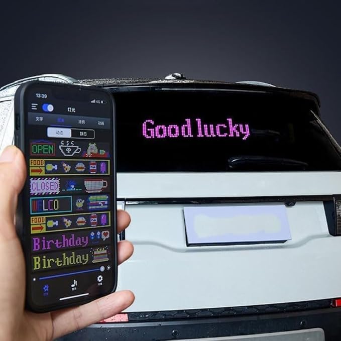 トラックや車のフロントに取り付け可能なLEDアニメーションスクリーンは、スマホアプリで簡単に操作でき、目のアニメーションやメッセージ表示などカスタマイズが可能な多機能ディスプレイです。USB給電で手軽に使用でき、走行中の注目度をアップさせるインテリア&外装アクセサリーとしても最適です。柔軟な設計で、車体の形状に合わせて自由に取り付けできます。